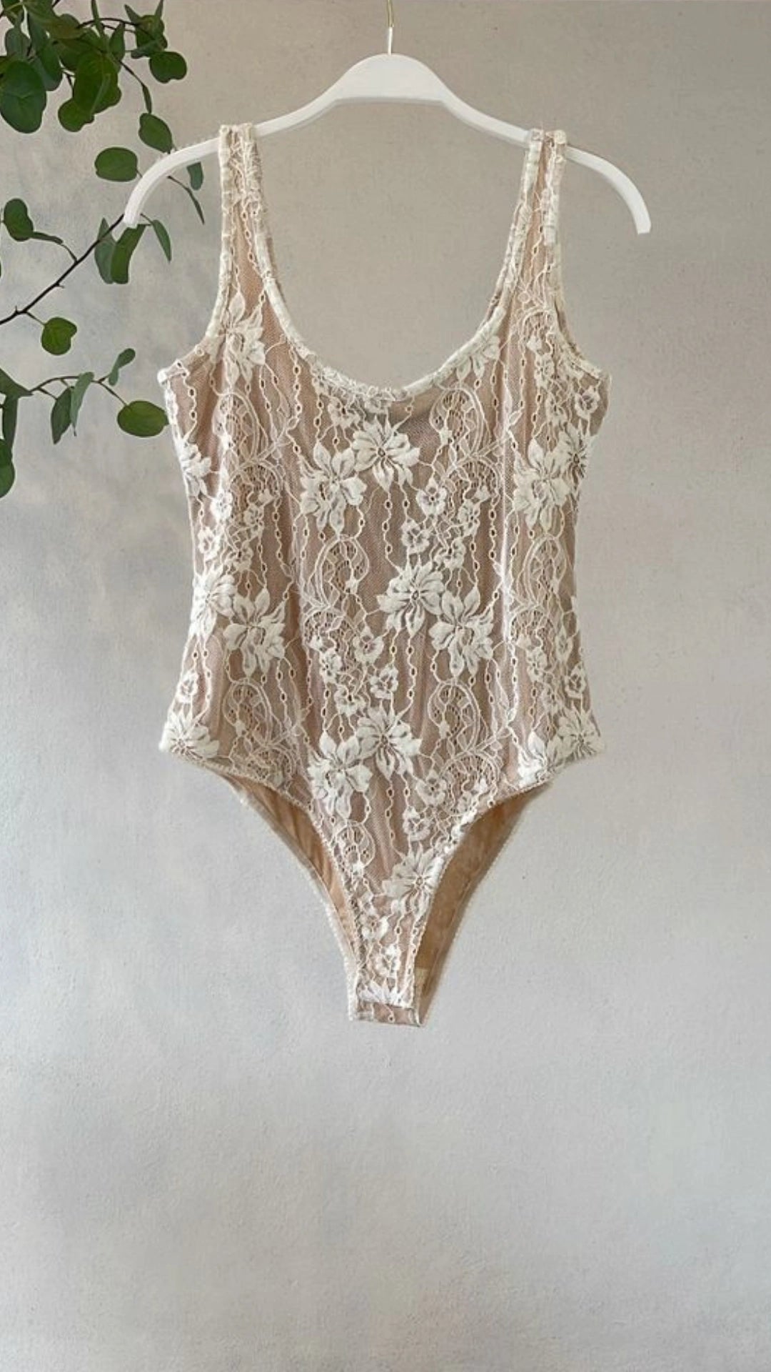 Body encaje strech tono ivory con fondo color nude